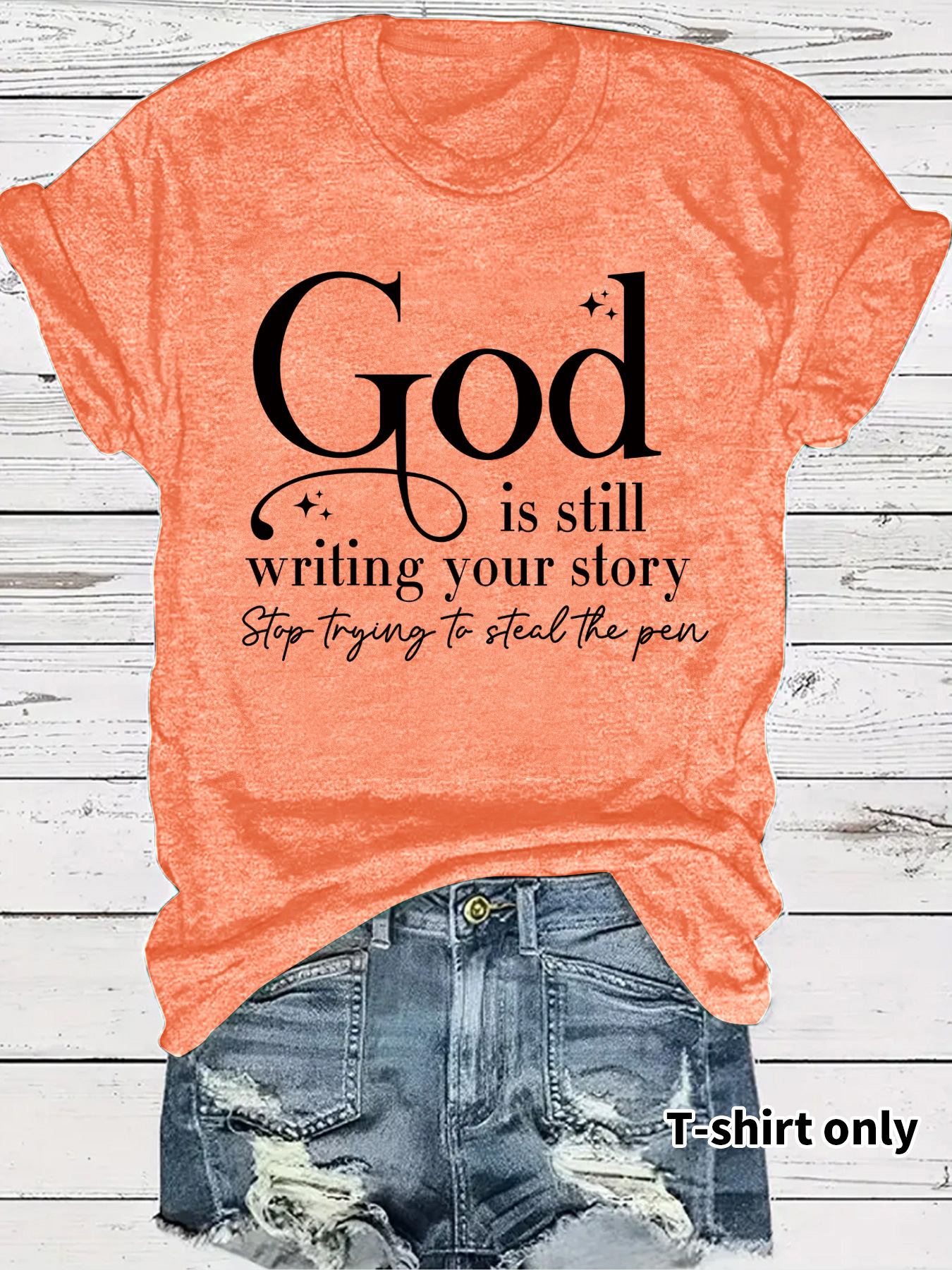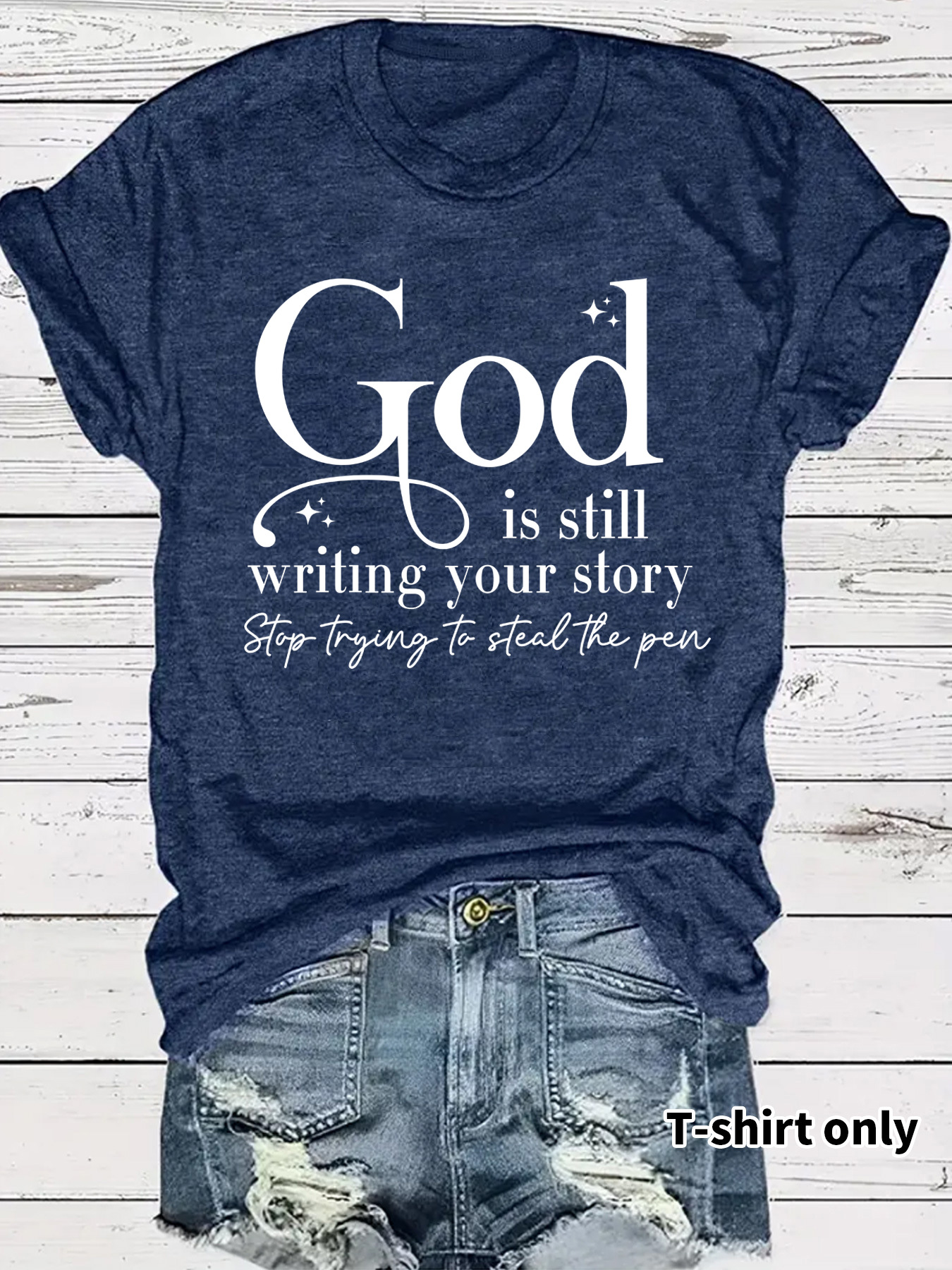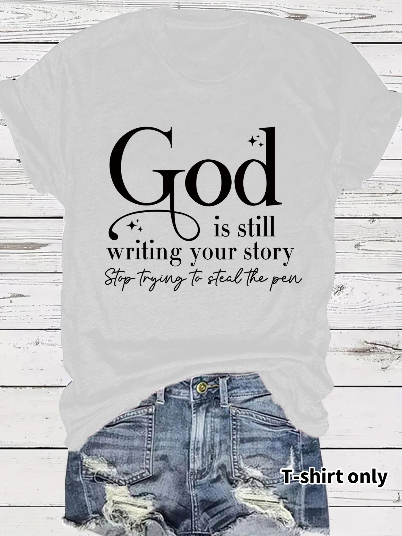 GOD slogan pattern round neck short sleeved shirt